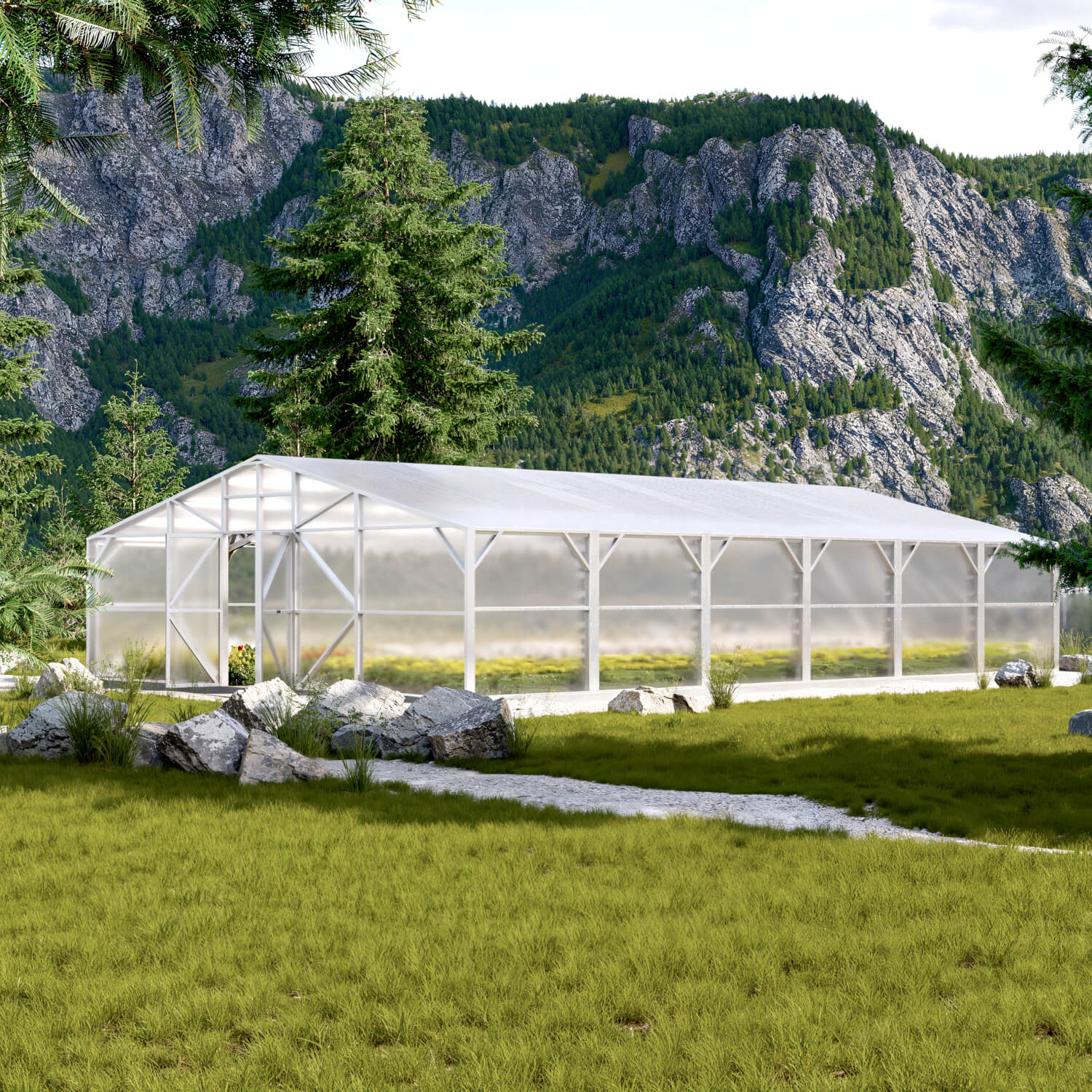 - Joustavat kokovaihtoehdot: Saatavana leveydet 4 m, 6 m ja 8 m sekä pituudet 4 m – 20 m. Korkeus 2,5 m ja seinäkorkeus 1,98 m tarjoavat runsaasti tilaa erilaisille kasveille.